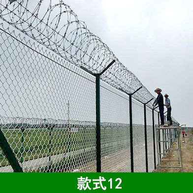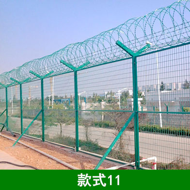 2、刀片刺绳钢筋网围界围栏形式采用钢筋网结构形式,其金属部分要求进行脱脂、表调、磷化、钝化等除锈、防腐处理,通过静电喷涂工艺达到防腐年限不少于10年。其具体尺寸和安装形式应符合《民用运输机场安全保卫设施》(MH/T7003-2017)中的相关规定。