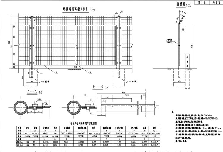 二、焊接网隔离栅参数设计标准