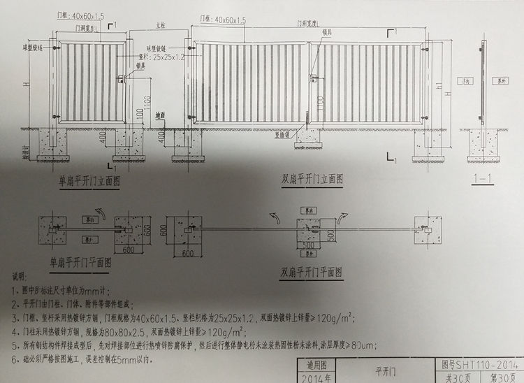 9、锌钢围墙门柱采用热镀锌方钢,规格为80*80*2.5mm,双面热镀锌上锌量≥120g/㎡。