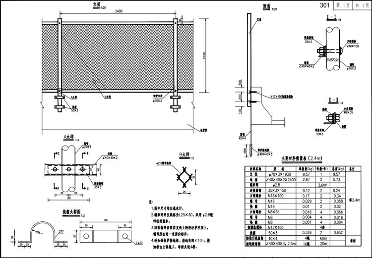 一、桥梁两侧防落物网一般构造