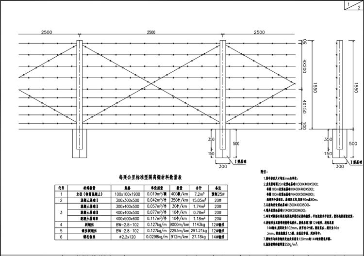 3.凡拐角处设置砼基础Ⅱ(300X400X500)。