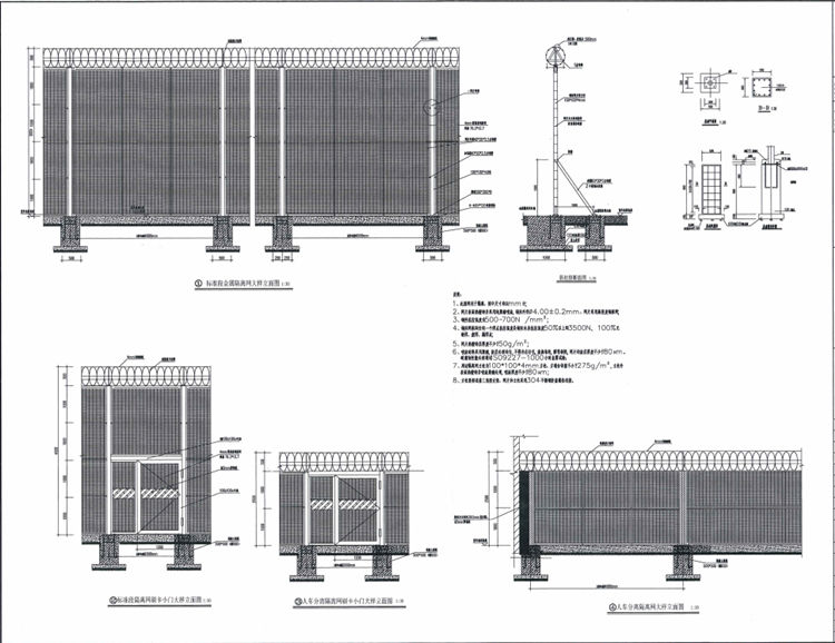 1、此围网用于隔离,图中尺寸均以mm计。