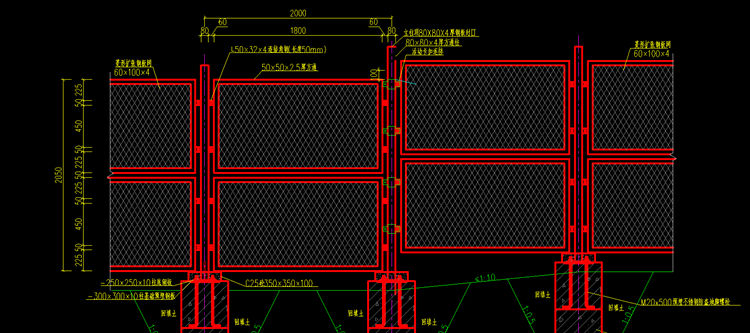 2.围网网面以Q235低碳钢板切割扩张制成,网面与方通应采用面接,接触长度不小于20mm,钢板网尺寸采用长节距100mm,短节距60mm,梗宽4mm ,钢板厚4mm,未尽部分详见详见《隔离栅》(CB/T 26941-2011 )。