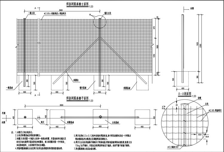 2.焊接网隔离栅立柱及斜撑基础为现浇素混凝土。