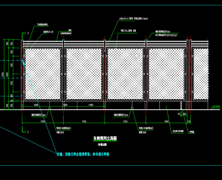 2、热镀锌浸塑隔离网绝对标高:围墙定位坐标和绝对标高详见总平面施工图。