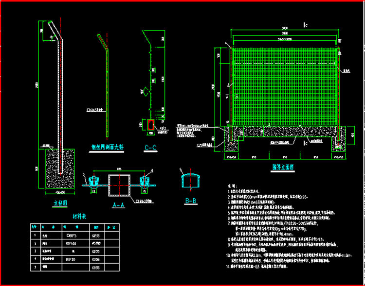 3.钢筋网围界净高2.0m(从地梁顶算起)。