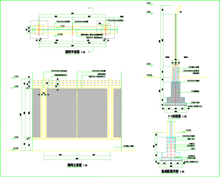 1、防护围网立柱采用100*100mm镀锌方管,厚度8.0mm。