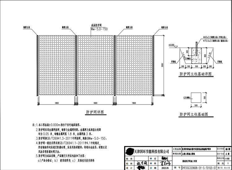 1.本隔离防护网工程标高±0.000m相当于室外地面高程。