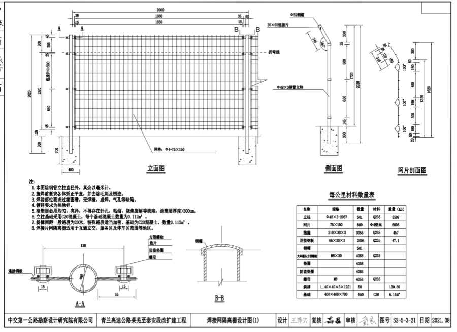 6.立柱基础采用C20混凝土,每个基础混凝土数量为0.112m3。