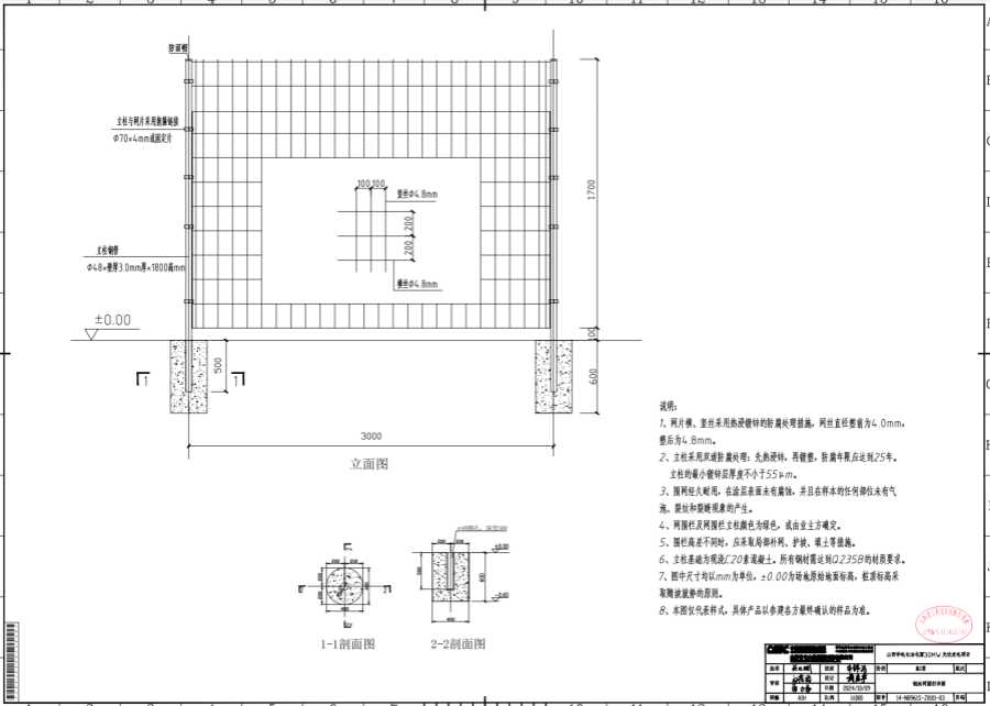6、立柱基础为现浇C20素混凝土。所有钢材需达到Q235B的材质要求。